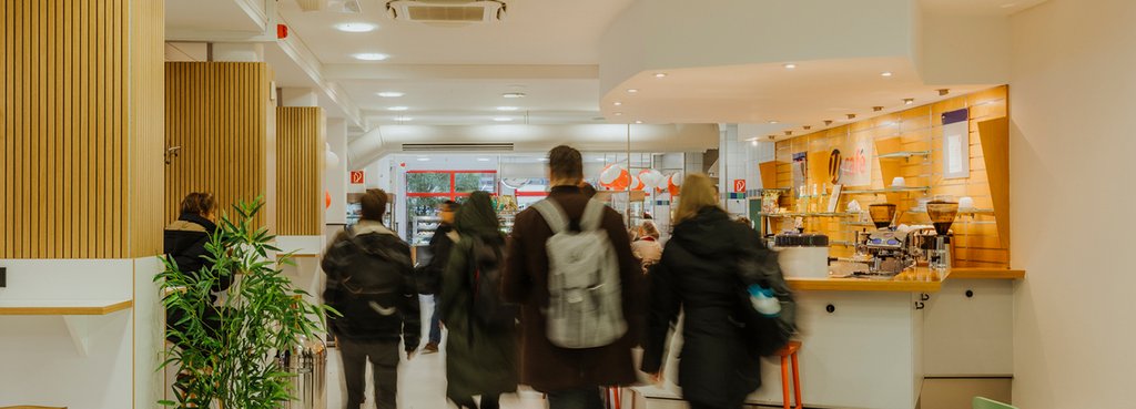 In the U-Café we offer a variety of sandwiches, baked goods, cakes, fresh salads, dairy products, fruit, confectionery and ice cream. In addition, you will find a wide selection of soft drinks and coffee specialties. Popular drinks such as latte macchiato, latte or cappuccino are also available in vegan versions at the U-Café. We also provide you with a daily hot lunch (see menu) and snacks from our grill station. Furthermore, we offer a varied pasta and salad buffet. Whether cold, hot, salty or sweet: of course, vegetarian and vegan options are also available.